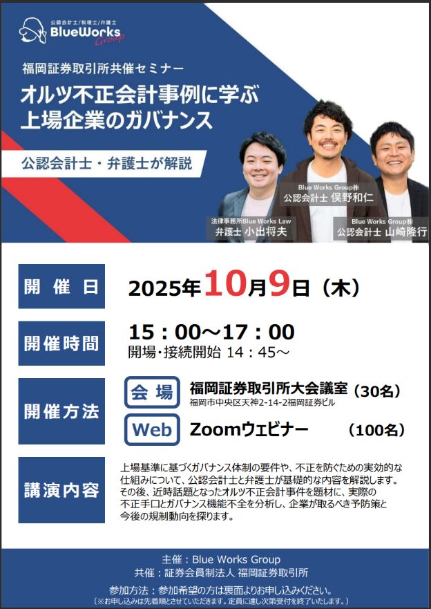 2025年10月9日(木 )セミナー「オルツ不正会計事例に学ぶ上場企業のガバナンス」開催のお知らせ